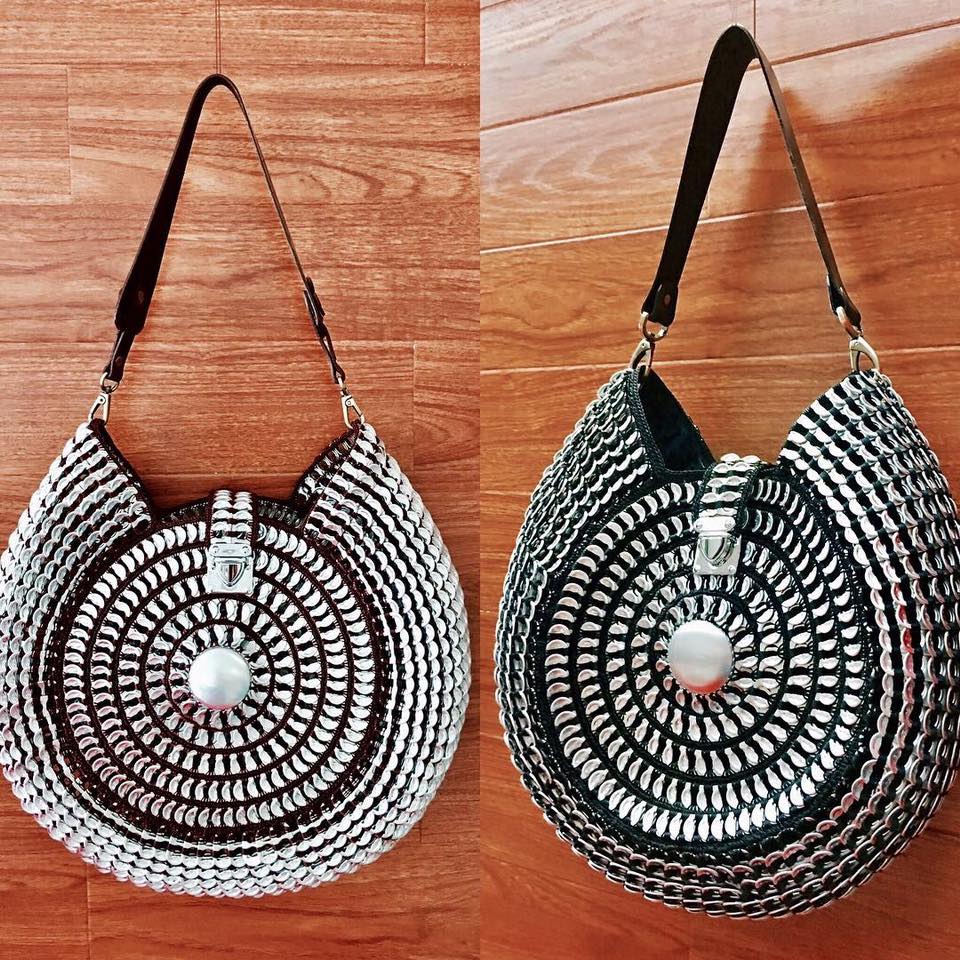 Crochet bag “OASIS” of Solene M is recycled from soda can pop tab.